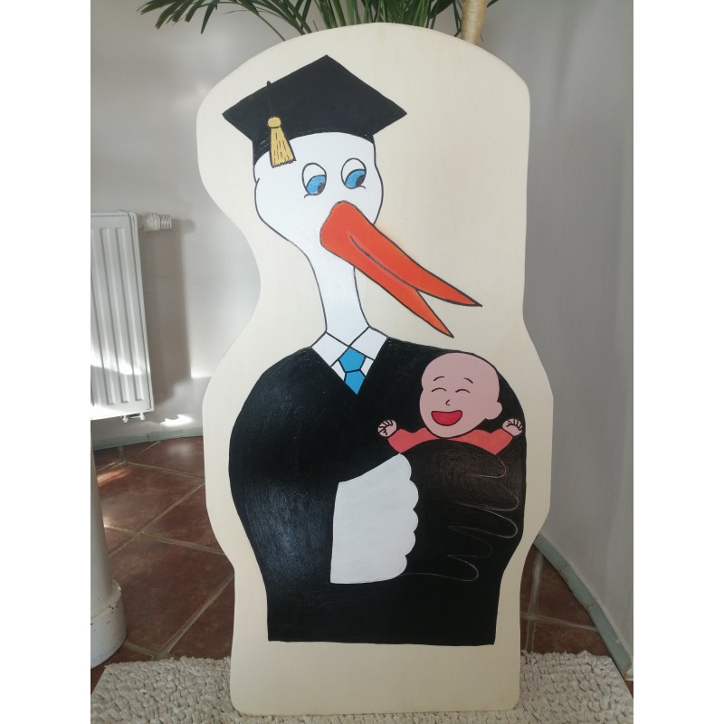 Mitgelieferter Holzpfahl, an dem Sie den Storch mit einem Schraubendreher festschrauben.