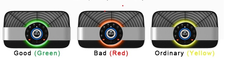 VEČFUNKCIONALNI ZASLON NA DOTIK: ima tri barvni prikazovalnik kakovosti zraka, indikatorsko lučko za hitrost ventilatorja, funkcijsko tipko za merjenje časa, funkcijsko tipko za spanje, indikatorsko lučko za opomnik o zamenjavi filtra, indikatorsko lučko za prikaz v realnem času PM2.5, indikatorsko lučko za temperaturo, funkcije za prilagajanje hitrosti vetra , funkcijska tipka bakterijske svetilke