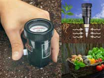 Merilec pH zemlje je praktičen in trapežen merilec, s katerim izmerimo kislost in vlažnost tal za primerno dodajanje gnojil, apnenca in drugih organskih snovi prsti. Merilec za zemljo enostavno potisnite v zemljo katere pH in vlažnost želite izmeriti in čez 10-15 min iz zgornje merilne skale odčitate vrednost pH zemlje (3-8) nato s pritiskom na beli gumb preberete še vlažnost zemlje v (%)iz spodnje merilne skale.