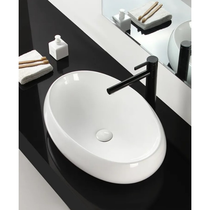 Umivalnik Melania White izstopa s svojo elegantno zasnovo, ki združuje čistočo bele barve z moderno, ovalno obliko. Zahvaljujoč visokokakovostni sanitarni keramiki je izjemno vzdržljiv in enostaven za čiščenje, kar omogoča ohranjanje brezhibne površine še vrsto let. Zasnovan je tako, da ga lahko kombinirate z različnimi vrstami armatur in čepov, pri čemer še posebej priporočamo uporabo zlatih dodatkov za dosego prestižnega videza.